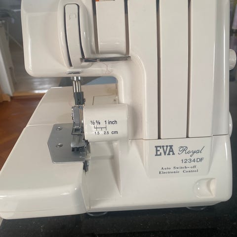 Singer 14SH754 overlocker symaskine i hvid. Maskinen er en elektrisk overlocker med 220V-240V strømforsyning, 50/60 Hz og en effekt på 105 W. Den har flere trådkegler og trådførere til overlock-syning af kanter og sømme i forskellige tekstiler. Velegnet til arbejde med strik, vævede stoffer og andre materialer, hvor der ønskes rene og holdbare sømme. Leveres med fodpedal og trådkegler som vist på billederne.