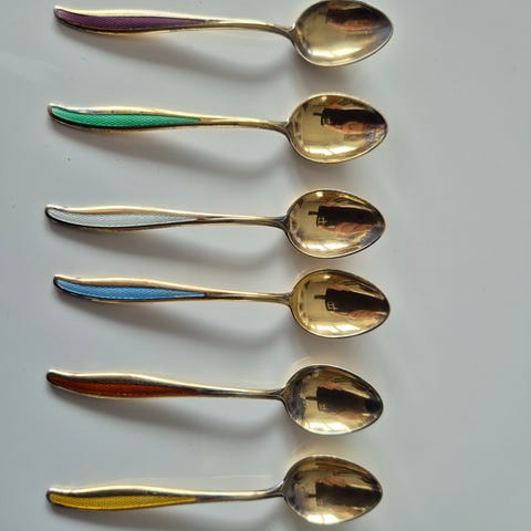 Materiale: sterling med emaljedekoration. Antal: 6 stk i æske.