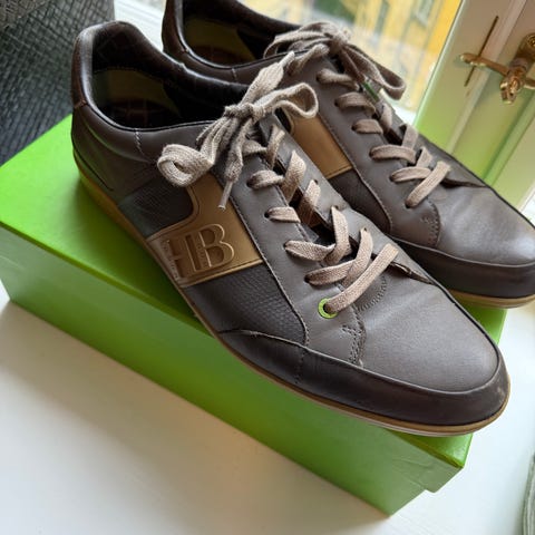Hugo Boss sneakers i størrelse 45. Modellen er sort og har snørelukning samt mellemhøj skaft. Overdelen fremstår i en kombination af tekstil og syntetisk materiale med gummisål. Skoene egner sig til hverdagsbrug og fritid.