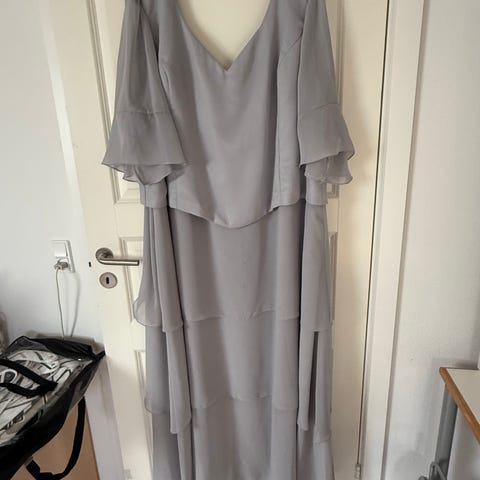 George fest/cocktailkjole til kvinder i str. XL/XXL. Kjolen er lilla/burgund og fremstillet i polyester med blondedetaljer yderst og glat foring inderst. Modellen har korte ærmer i blonde og knælængde. Egnet til brug ved festlige lejligheder som fester og andre formelle arrangementer.