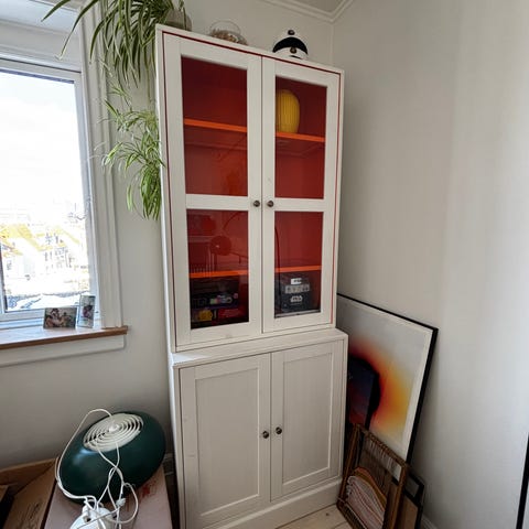 3 stk. IKEA havsta vitriner i udgået grå med glashylder i overskab.