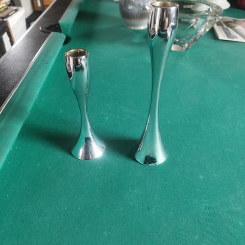Stelton lysestager sæt i kobberfarvet metal. Sættet består af to lysestager i forskellig højde med organisk, slank form. Velegnet til almindelige stagelys og egnet som bord- eller vinduesdekoration i hjemmet.