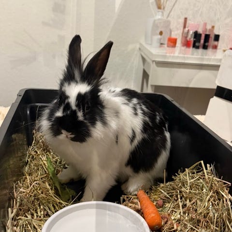 Så nu spørg vi her, er der nogen der vil tage en kanin til sig, det vil gøre så ondt på os at skulle aflive dem.