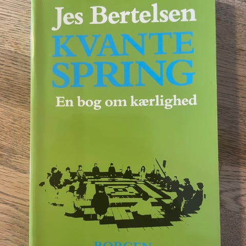 Jes Bertelsen "Kvantespring – En bog om kærlighed" bog. Dansk faglitterær udgivelse fra forlaget Borgen om kærlighed, energilove, parforhold, tantra og fremtiden. Indeholder tekstafsnit, illustrationer og markeringer med overstregningstusch enkelte steder i bogen.