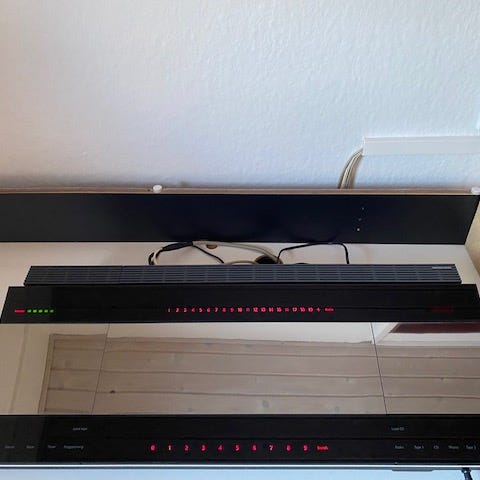 Beocenter 9300 er et af Bang & Olufsens mest ikoniske 90’er-designs med de motoriserede låger, der elegant glider op ved berøring.