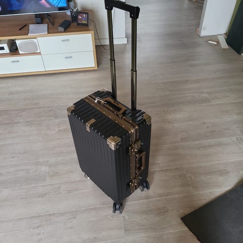 Fantastisk Rimowa kuffert lavet i samarbejde med Lufthansa og kun givet/solgt til medarbejdere så den er relativt sjælden. Lavet i en smuk champagne farve der bare spiller. Den har været med på 2 flyture - til Bilbao og tilbage igen. Lynlåse, teleskophåntag, TSA lås mv. fungerer fejlfrit. Spørg endelig hvis du har spørgsmål.
