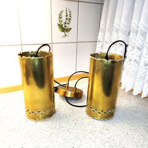 Original retro trio hængelampe med 3 pendler ophængt i V formet ophæng