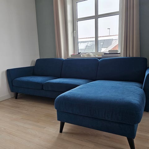 Vi sælger denne flotte Theca Levane chaiselongsofa, da vi desværre har måttet erkende, at den fylder for meget i vores lejlighed.