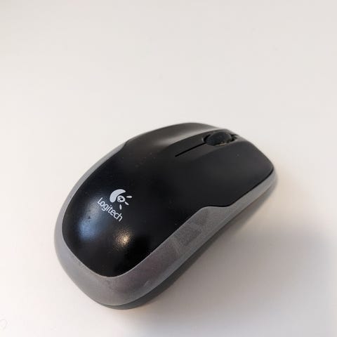 Logitech trådløs mus i grå. Musen er kompakt og egnet til brug med bærbar eller stationær computer. Med USB-adapter. Fungerer godt. Larmer ikke, når man klikker.
