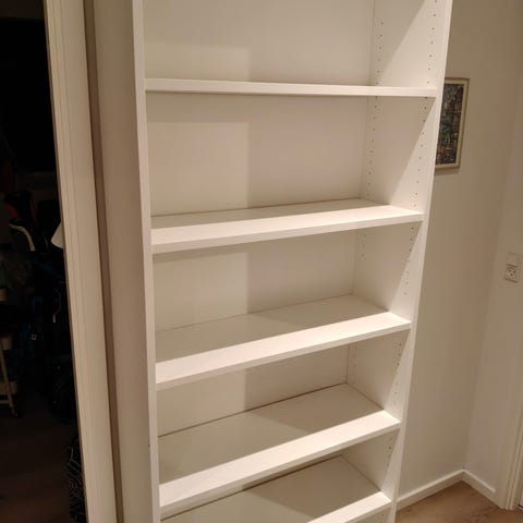 Med ekstra hylder da den har været brugt som skoreol.