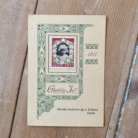 Julekort med original collage af Eva-Maria Wiehe.