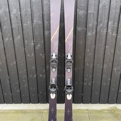 Line Firstlady ski i hvid med sorte detaljer. Alpinski med monterede bindinger, egnet til pisteløb. Designet til kvinder. Undersiden fremstår glat og med jævn belægning. Velegnet til brug på almindelige alpine skibakker.