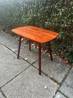 Spisebord med Hollandsk udtræk,plade af Formica med teaktræs look,sarg og ben af bøgetræ.