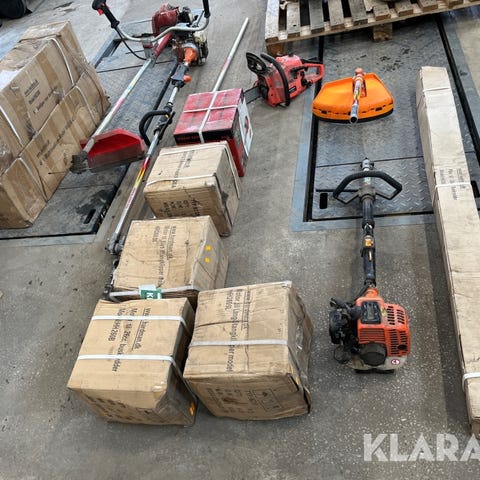 Samlet lot med havemaskiner. Texas multimaskine BCU33M med forsats til græstrimmer, buskrydder, kædesav og hækkeklipper. Alko motorsav BKS4540. Alko BC4125 græstrimmer. Jeg kender ikke til tilstanden af maskinerne, udover forsats med hækkeklipper og kædesav til Texas maskinen er ubrugte. Samlet pris for det hele 650kr