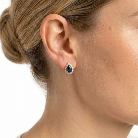 Emerald-cut Rosetøreringe 14 kt i guld med safir og