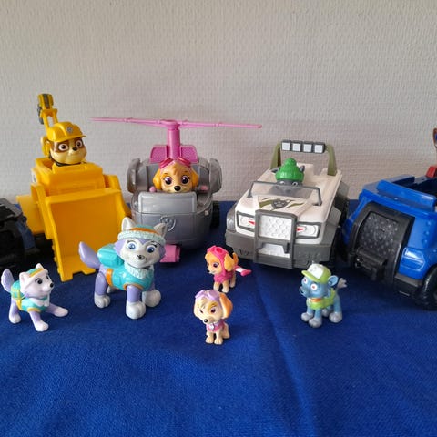 Paw Patroleren i rød og blå plast. Bilen kan åbnes i siden, så der er plads til flere små figurer indeni. Forenden kan klappes ned som rampe. Egnet som køretøj til Paw Patrol-figurer og andet småt legetøj til rolleleg.