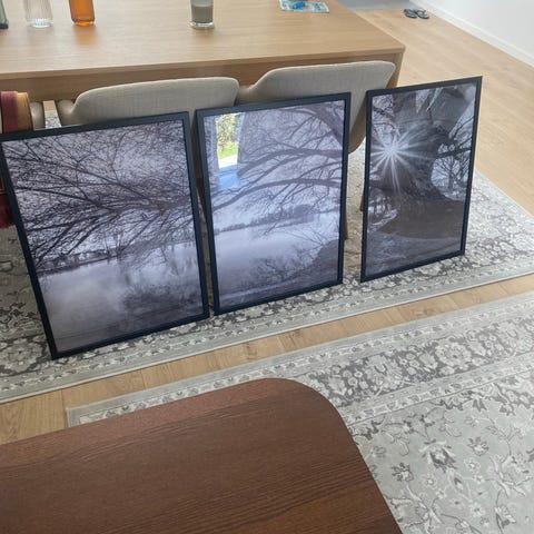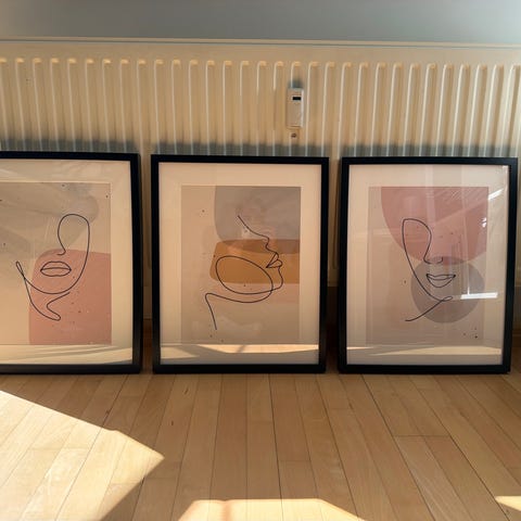Sælger to flotte, stilrene plakater i størrelse 50x70 cm inkl. sorte rammer.