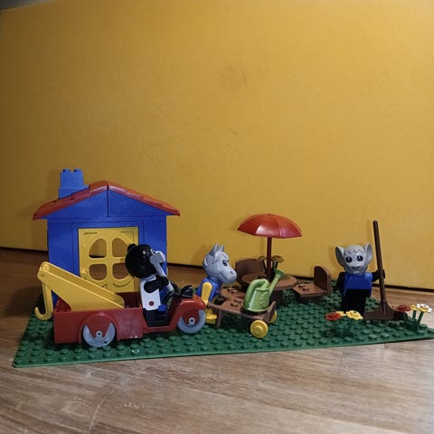 Fabuland lageplads med div. figurer og redskaber dele af 3681