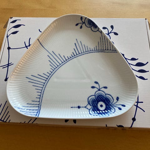 Royal Copenhagen Musselmalet Riflet firkantet tallerken, 20 cm