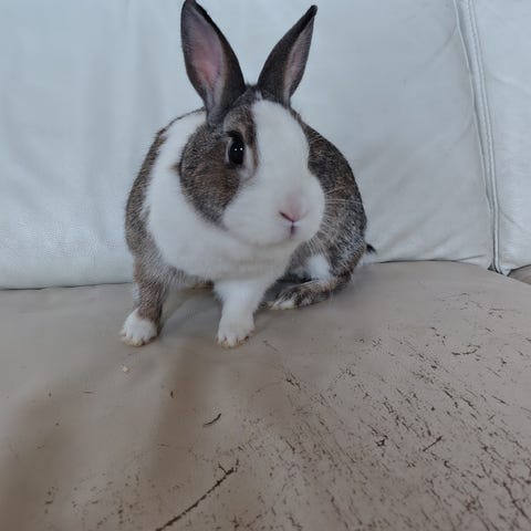 Hej. Lille Ellie søger en ny familie. Ellie er 4 år gammel og har siden i sommers været en udekanin, men kan sagtens bo indenfor hvis man vil have det. Hun skal have et hjem, hvor omgivelserne er rolige, uden larmende små børn og uden for meget støj så hun ikke bliver stresset. Hun har altid været van til at omgive sig i hendes eget selskab, så derfor skal hun helst ikke et sted hen hvor der er andre kaniner, men et sted hen hvor hun kan være i trygge rammer og få den opmærksomhed, som hun har brug for. Hun elsker at blive kælet og nusset, og er van til at blive båret på.