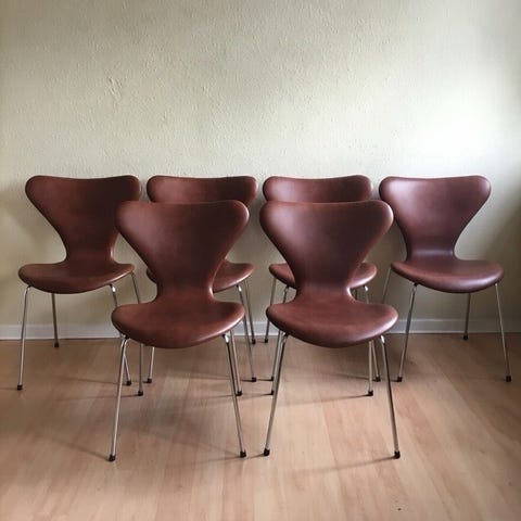 6 stk. Arne Jacobsen 3107 stole med stort læder.
