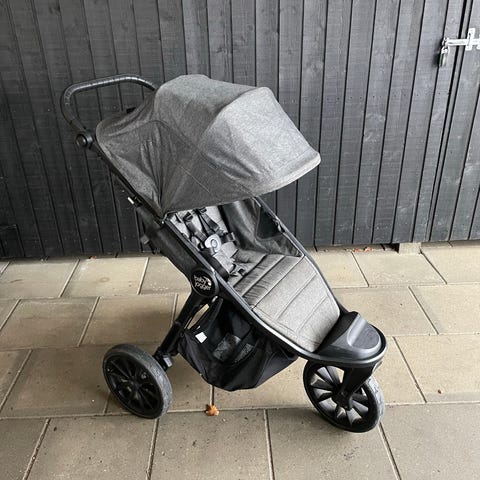 Baby Jogger City Elite 2 klapvogn i sort. Modellen har tre hjul med stort enkelt forhjul og to store baghjul, som giver god stabilitet og manøvredygtighed. Sædet har justerbare seler og polstret sidde- og liggeflade. Der er varekurv under sædet til opbevaring af tasker og indkøb. Håndtaget kan justeres og der er kaleche over sædet, som kan give læ og skygge. Velegnet som hverdags- og løbeklapvogn til ét barn.
