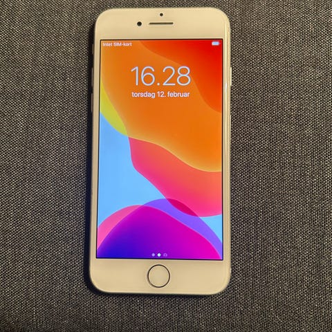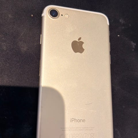 Apple iPhone 7 smartphone med 128 GB intern hukommelse. Farve: rosa guld med hvid front. Batteriets maksimale kapacitet 78 % . Leveres med opladningskabel som vist på billederne.