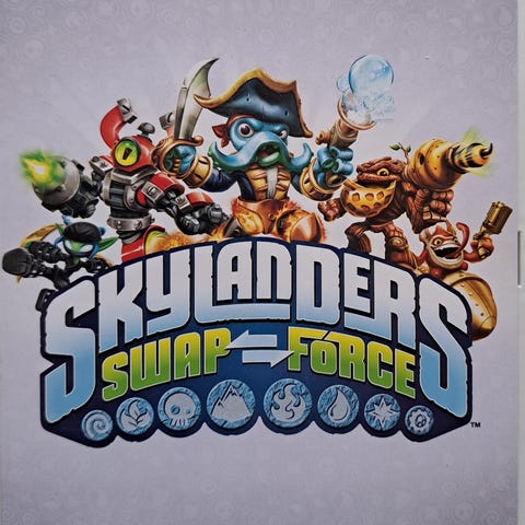 Computerspillet Skylanders Swap Force til Nintendo Wii, portal til Skylanders Swap Force og 11 figurer dertil.