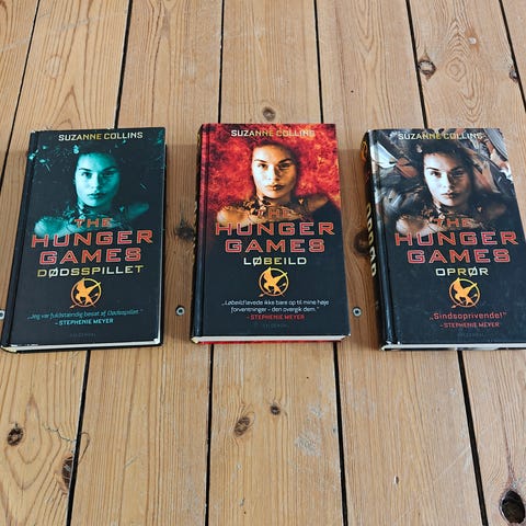 Af: Suzanne Collins. Gyldendal 2012. 3 bind. Hardbacks. 2. udgave. Enkelte overfladiske brugsspor. Sælges kun samlet