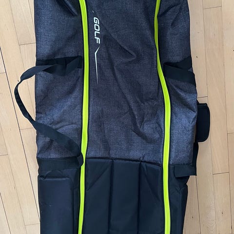 Dormy Travel rejsetaske i sort og rød. Tasken har lynlåslukning og flere udvendige lommer samt bærehåndtag og stropper til at spænde tasken ind. Velegnet til transport og opbevaring af golfudstyr på rejser.