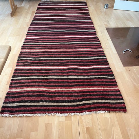 H&M Home løber i flettet naturmateriale i størrelsen ca. 73 x 200 cm. Tæppet har en naturfarvet, meleret overflade med tydelig struktur i vævningen. Egnet som gangtæppe i entré, gang eller andre smalle rum. Kan bruges på trægulv eller andre hårde gulve, eventuelt med skridsikkert underlag efter behov. Købt for 900