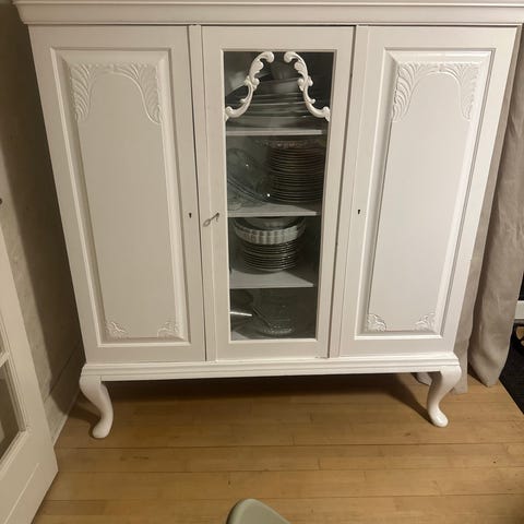 Smukt hvidmalet vitrineskab i landlig stil sælges grundet flytning.