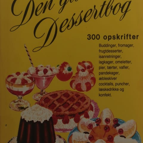 Kogebog med fokus på desserter. Forsiden viser en desserttærte med bær og flormelis. Bogen indeholder opskrifter og inspiration til forskellige typer desserter til servering efter måltider eller til kaffebordet.