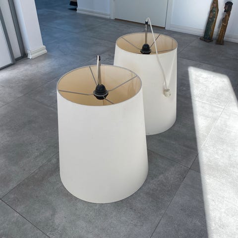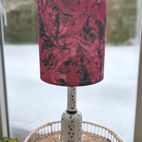 Skærmene foldes i hånden i en pæn og god papirkvalitet. Du kan selv vælge størrelse og print.
