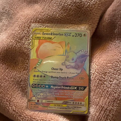 Pokémon Eevee GX samlekort med holografisk overflade.
