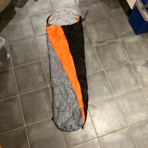 Har været brugt på en enkelt tredages tur og er uden brugsspor - det eneste der ikke er som nyt er at barns navn er streget ud på mærke indeni sovepose og på hylster.