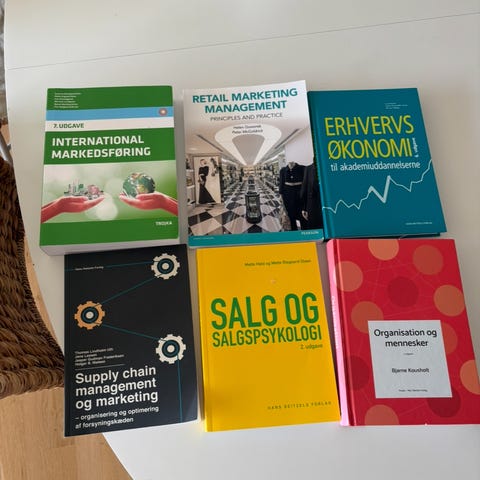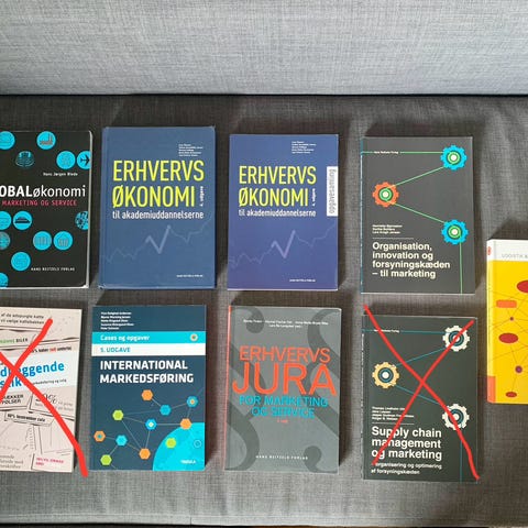 *Alle bøger er købt fra ny (undtagen Supply Chain, Salg og kommunikation og International Markedsføring).