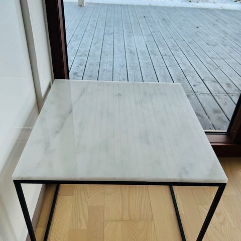 To elegante og stilrene Bloomingville sofaborde i hvid marmor sælges samlet eller hver for sig.
