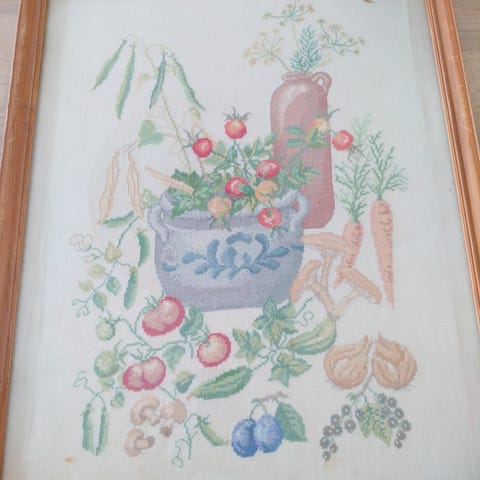 Andet, motiv: Portrætter/Figurer, b: 42 h: 54.5, Broderi / Stramaj billede af dreng i blå, gammelt, indrammet med glas. fejler intet.