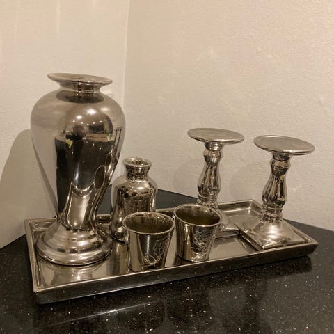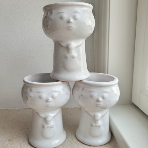 Diameter 12,5 cm og højde 7 cm. Selve åbningen er 8 cm. Vejer ca 626 gram pr. stk.