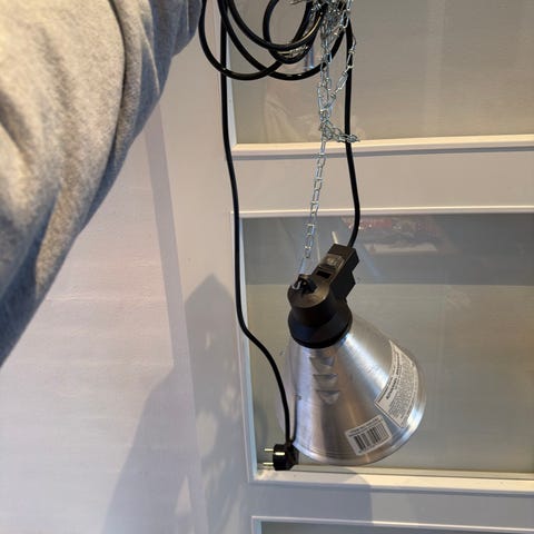 Varmelampe med reflektor og rød pære
