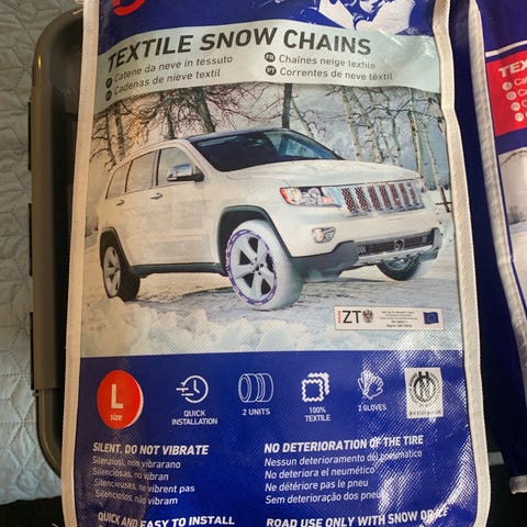 Snesokker til bilen i stedet for kæder. Brugt 1-2 gange. Passer til de fleste biler: se listen på billede