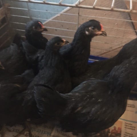 Unge høns fra min farverige gruppe ud af 6818