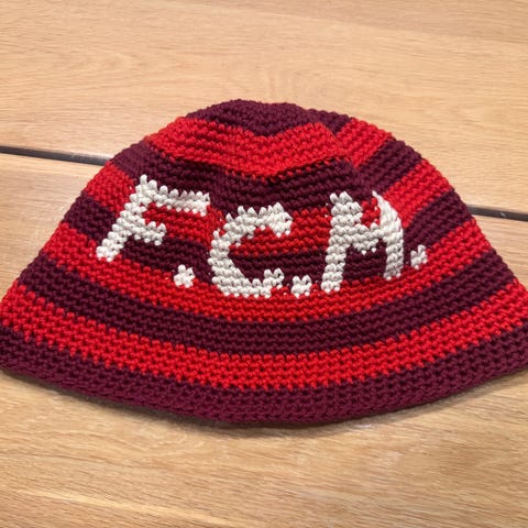 AGF hæklet bøllehat til unisex. Hatten er hæklet i garn med primært hvid bundfarve og mørkeblå detaljer, herunder AGF-tekst og mønster rundt om hatten. Der er desuden en rød stribe langs kanten. Velegnet som fritidshat eller som tilbehør til kampdage og udendørsaktiviteter.