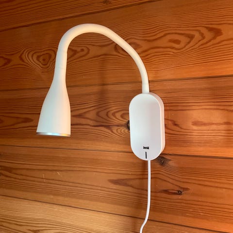 Smal lampe med godt lys evt under køkkenskabe eller lign . Pæn stand - virker fint. Med ledning og to små ophæng. Ca 48 cm lang