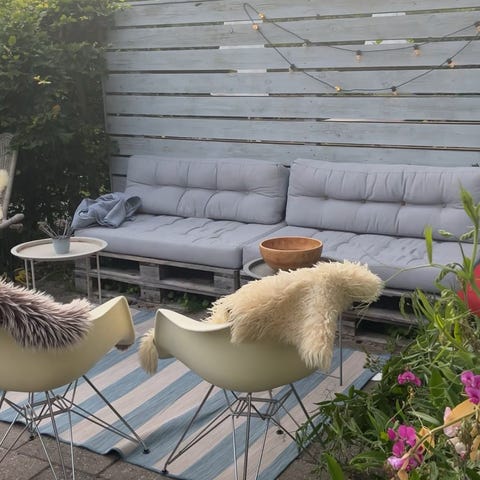Pallesofaer. Kan åbnes så der er mulighed for opbevaring i dem. En har rygstøtte.