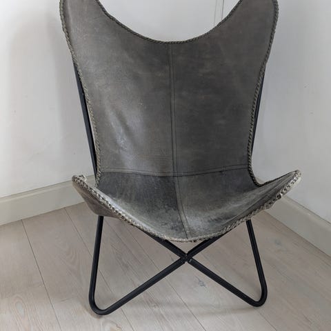 En super lækker flagermusstol, behagelig at sidde i. Den kan pakkes og foldes sammen, derfor kan den også fragtes.