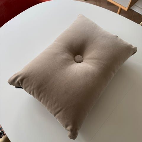 Hay sofapude, Hay, 2 stk Hay sofapuder i grå med gule knapper på den ene side og grå på den anden.