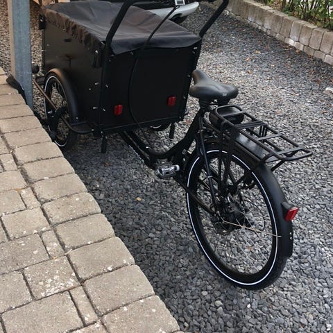 Der medfølger oplader samt nøgler til lås og batteriet.