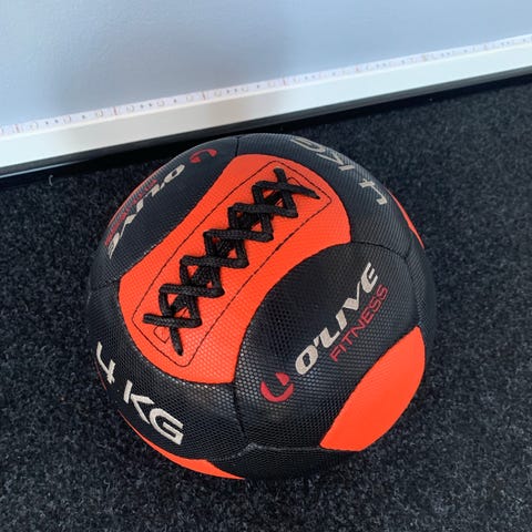 Olive wall ball på 3 kg i sort og gul. Bolden er syet med kraftige syninger og har en overflade, der giver godt greb. Velegnet til funktionel træning, crossfit og styrketræning, hvor der arbejdes med kast, squat og coreøvelser. Kan bruges både i hjemmetræning og i træningscenter.